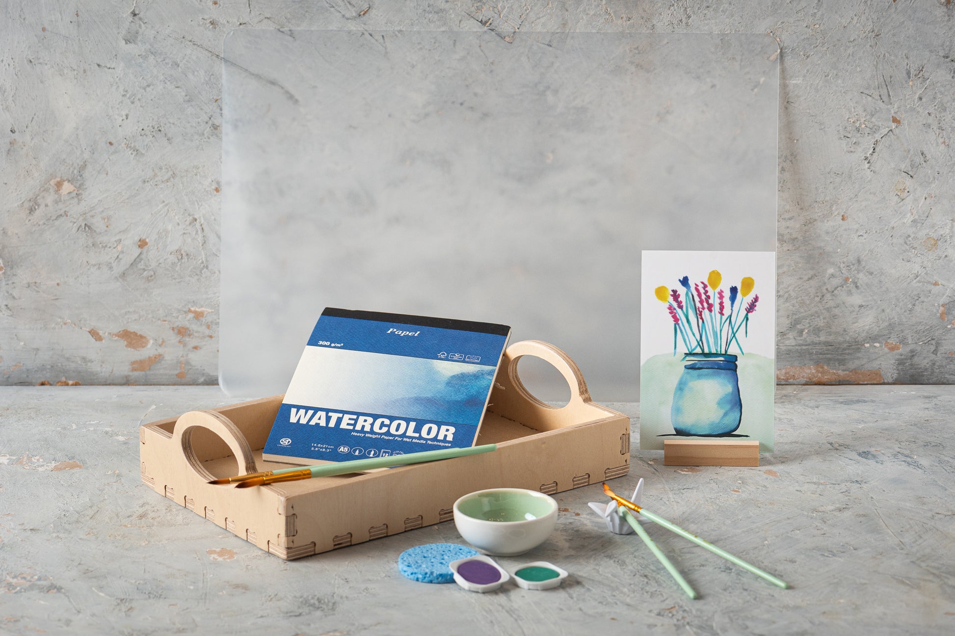 ערכת צבעי המים שלנו נולדה מתוך הגישה המונטסורית, ומיועדת במיוחד לשלב שבו הילד מתחיל לגלות את הצבע והמים ככלים לביטוי עצמי. זוהי הזמנה ראשונה לעבודה חושית ויצירתית, המשלבת ריכוז, שקט פנימי והנאה מהתהליך יותר מאשר מהתוצאה. כל מרכיבי הערכה לוקטו בקפידה כדי להתאים במיוחד לעבודה של פעוטות וילדים צעירים המתנסים לראשונה בציור בצבעי מים, על פי עקרונות הגישה המונטסורית: