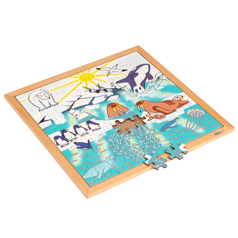 פאזל 100 חלקים העשויים עץ כולל מסגרת ותבנית מעץ