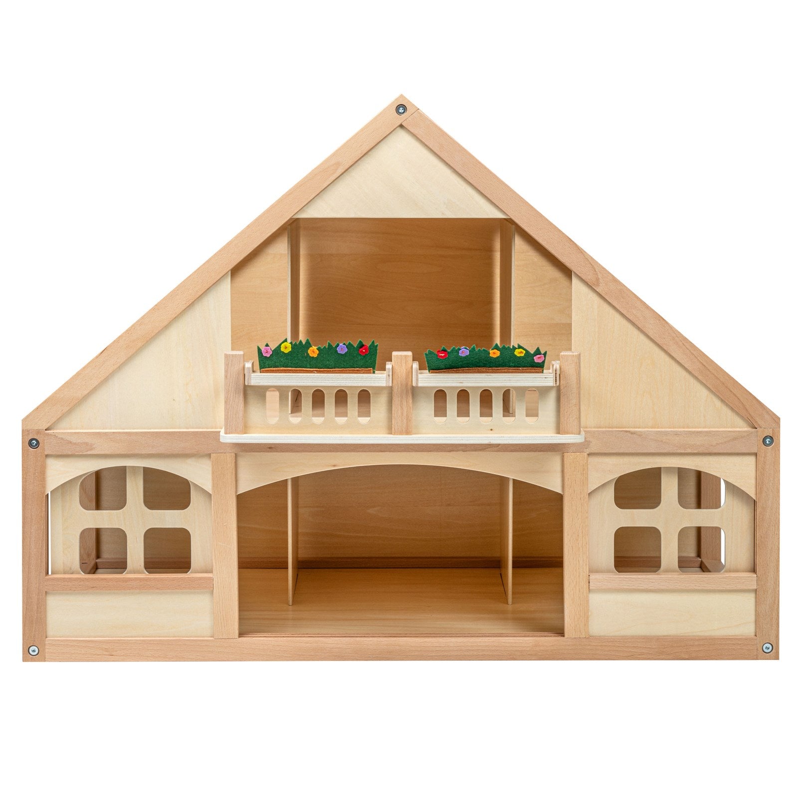 בית בובות עשוי מעץ, המיועד לילדים מגיל 3 ומעלה. הוא מעוצב בסגנון מודולרי, קל להרכבה, ומאפשר לילדים לחקור את חיי המשפחה ולפתח יצירתיות דרך משחק דמיון